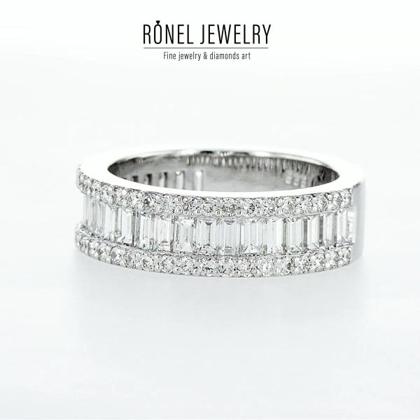 טבעת סופר יוקרתית משובצת ביהלומים טבעיים בליטוש אמרלד ויהלומים עגולים